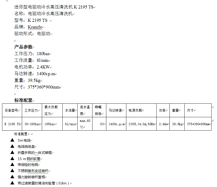 產品名稱:電驅動冷水高壓清洗機