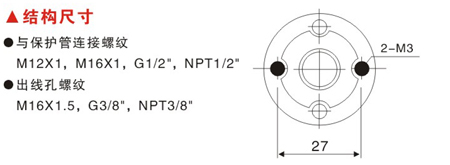與保護(hù)管連接螺紋:M12x1,M16x1, G1/2", NPT1/2"