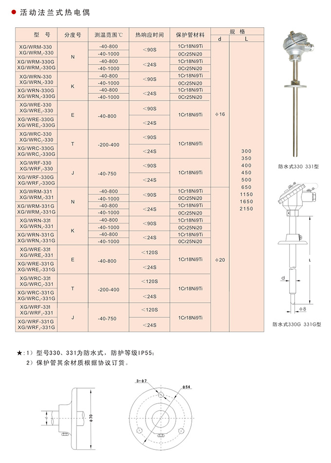 1)型號(hào)330、331為防水式,防護(hù)等級(jí)IP55;
