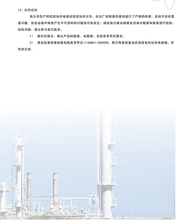 一切需要加熱、保溫、防凍、采暖的場所、容器、管道等。如賓館、酒店、試驗室、高 檔住所的加熱保溫等。