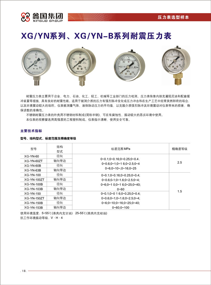XG-YN系列、XG-YN-B系列耐震壓力表