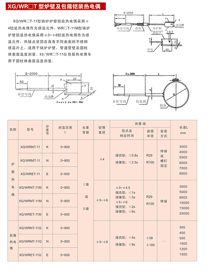 鍋爐爐壁熱電偶(爐壁抱箍熱電偶):